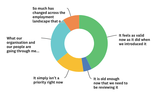 However, for 36% of the organisations we surveyed, either the employment landscape or their own organisation and people had gone through such change that a review of their EVP felt inevitable.